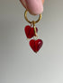 These glass hearts are 10mm x 10mm. Earrings have a 14mm diameter and are gold-plated sterling silver or plain sterling silver. Wire is gold-filled or sterling silver.